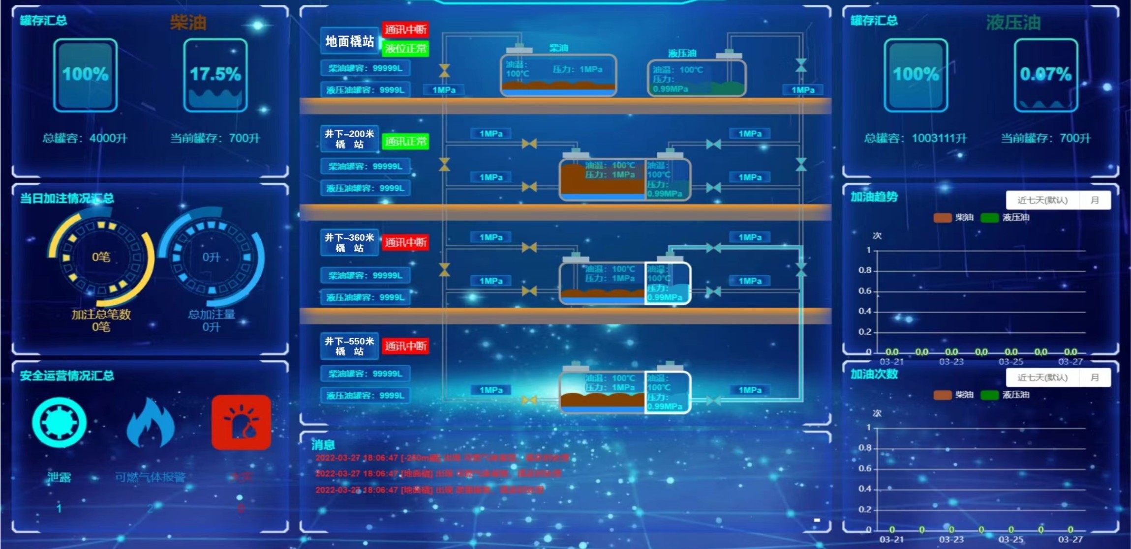 凡口鉛鋅礦井下680米智能供油系統(tǒng) 目前正有序施工中, 預(yù)計(jì)9月底完工并投入使用。該項(xiàng)目為全國首創(chuàng), 由韶關(guān)企業(yè)進(jìn)行技術(shù)攻堅(jiān) 并申請多項(xiàng)國家專利, 擬申報(bào)吉尼斯世界紀(jì)錄 “全球最深的智能供油系統(tǒng)”。 凡口鉛鋅礦井下智能供油系統(tǒng) 需在地面設(shè)置橇裝加油裝置, 并分別在地下 330米、480米和680米處 建設(shè)智能化供油系統(tǒng), 通過鉆孔鋪設(shè)輸油管線, 將油品從地面輸送到井下。 地下330米智能加油點(diǎn), 目前已進(jìn)入收尾階段, 現(xiàn)場有兩根 從地面裝置接下來的輸油管, 用于工程車加油, 另一邊也有兩根輸油管輸送到 地下480米和680米的智能加油點(diǎn)。 別看油管很細(xì),鉆孔不大, 但施工難度并不小, 全長3千多米的輸油管, 垂直打孔偏差不能超過1米。 作為亞洲最大的 單體鉛鋅銀礦生產(chǎn)基地, 凡口鉛鋅礦 有井下工程車輛和設(shè)備100多臺, 井下用油量大。 井下智能化供油系統(tǒng)啟用后, 不僅解決井下用油安全、環(huán)保風(fēng)險(xiǎn), 同時降低生產(chǎn)用油成本, 推進(jìn)凡口鉛鋅礦建設(shè)智能化礦山, 實(shí)現(xiàn)“無人開采”。 如果鉆孔偏差太大,就找不到鉆下來的孔,影響輸油管道的布設(shè),增大成本。3千多米有5千多個焊接點(diǎn),所有的焊接口都要達(dá)到高壓管道的焊接要求,這個項(xiàng)目是全國首創(chuàng),在全國所有礦山企業(yè)中,我們是首次使用通過輸油管道往井下輸油,并且實(shí)現(xiàn)智能控制的方案。 這個月底把地下330米加油點(diǎn)完工,開始加油,9月底把底下480米和680米開通使用。希望通過這個項(xiàng)目打造創(chuàng)新科技的韶關(guān)樣板,把先進(jìn)的經(jīng)驗(yàn)和技術(shù)推廣到全省、全國乃至全球。